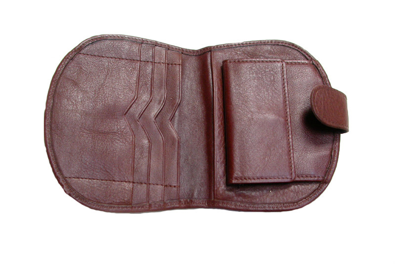 Netradičně řešená dámská peněženka, 4× průřez na kreditní karty, kapsička na drobné ,separace na bankovky, kapsička na doklady apod.